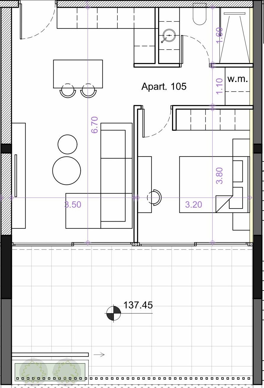 1-bedroom apartment includes: